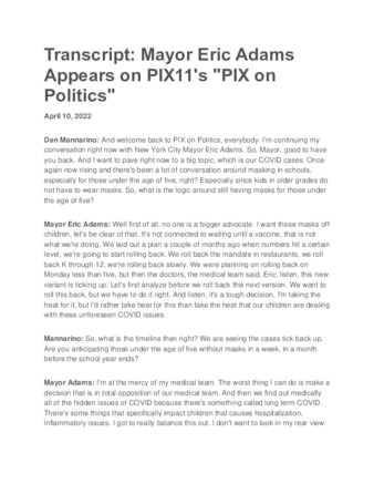 | User Ciara Collins has attached Mayor_s_Press_Office_April_10_2022.pdf to Transcript: Mayor Eric Adams Appears on PIX11's "PIX on Politics" |
