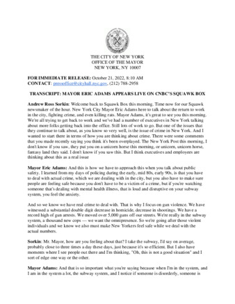 | User Ciara Collins has attached Mayor_s_Press_Office_Oct_21b_2022.pdf to TRANSCRIPT: MAYOR ERIC ADAMS APPEARS LIVE ON CNBC’S SQUAWK BOX |
