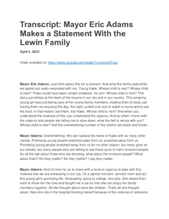 | User Ciara Collins has attached Mayor_s_Press_Office_April_4a_2022.pdf to Transcript: Mayor Eric Adams Makes a Statement With the Lewin Family |