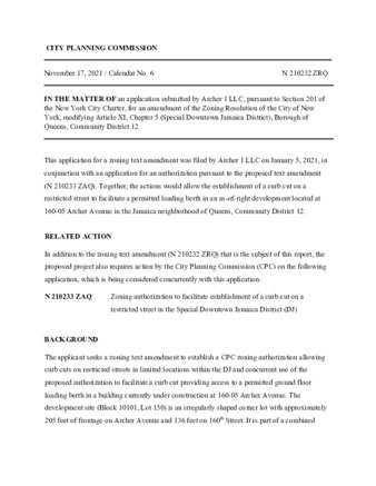 File Format: pdf (Portable Document Format)File Title: 160-05 Archer Avenue - N 210232 ZRQPage Count: 11File Size: 355414Original Checksum: a9aee85ed443b57ec2657fe656d3da25Mime Type: application/pdf