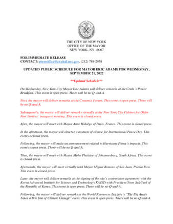 | User Ciara Collins has attached Mayor_s_Press_Office_Sept_20e_2022.pdf to UPDATED PUBLIC SCHEDULE FOR MAYOR ERIC ADAMS FOR WEDNESDAY, SEPTEMBER 21, 2022 |