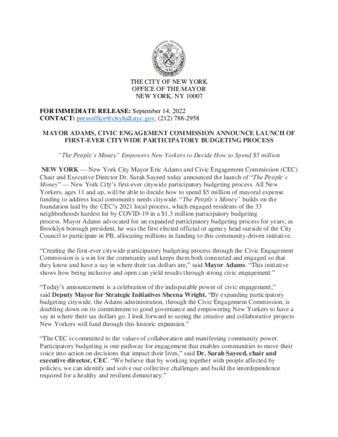 | User Ciara Collins has attached Mayor_s_Press_Office_Sept_14a_2022.pdf to MAYOR ADAMS, CIVIC ENGAGEMENT COMMISSION ANNOUNCE LAUNCH OF FIRST-EVER CITYWIDE PARTICIPATORY BUDGETING PROCESS |