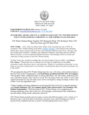 | User Ciara Collins has attached Mayor_s_Press_Office_Jan_18f_2022.pdf to MAYOR ERIC ADAMS AND NYC & COMPANY KICK OFF ‘NYC WINTER OUTING’ TODAY WITH LIGHTING CEREMONY AT THE EMPIRE STATE BUILDING |