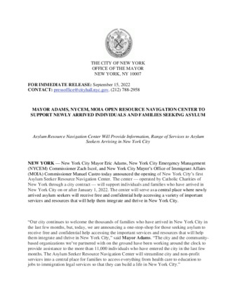 | User Ciara Collins has attached Mayor_s_Press_Office_Sept_15_2022.pdf to MAYOR ADAMS, NYCEM, MOIA OPEN RESOURCE NAVIGATION CENTER TO SUPPORT NEWLY ARRIVED INDIVIDUALS AND FAMILIES SEEKING ASYLUM |