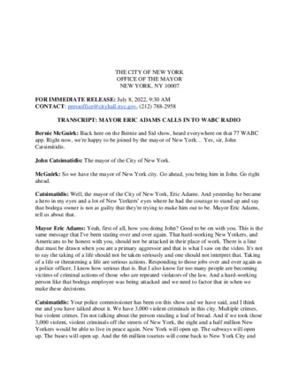 | User Ciara Collins has attached Mayor_s_Press_Office_July_8c_2022.pdf to TRANSCRIPT: MAYOR ERIC ADAMS CALLS IN TO WABC RADIO |