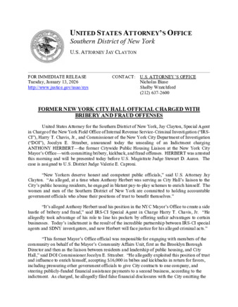 | User Rosemary Rumph has attached Herbert_Arrest_PR_nq.pdf to FORMER NEW YORK CITY HALL OFFICIAL CHARGED WITH BRIBERY AND FRAUD OFFENSES |