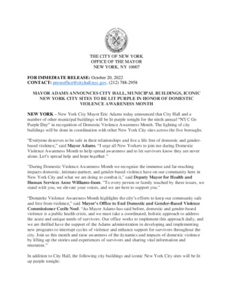 | User Ciara Collins has attached Mayor_s_Press_Office_Oct_20_2022.pdf to MAYOR ADAMS ANNOUNCES CITY HALL, MUNICIPAL BUILDINGS, ICONIC NEW YORK CITY SITES TO BE LIT PURPLE IN HONOR OF DOMESTIC VIOLENCE AWARENESS MONTH |