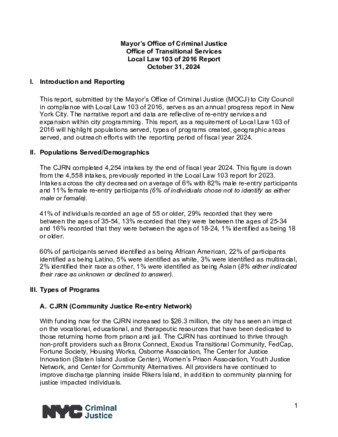 | User Erin Cunningham has attached Local-Law-103-FY24-Final.pdf to Office of Transitional Services Local Law 103 of 2016 Report |