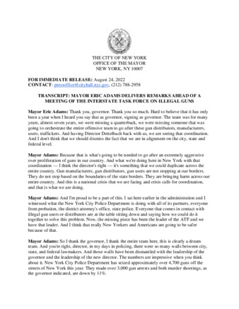 | User Ciara Collins has attached Mayor_s_Press_Office_Aug_24d_2022.pdf to TRANSCRIPT: MAYOR ERIC ADAMS DELIVERS REMARKS AHEAD OF A MEETING OF THE INTERSTATE TASK FORCE ON ILLEGAL GUNS |