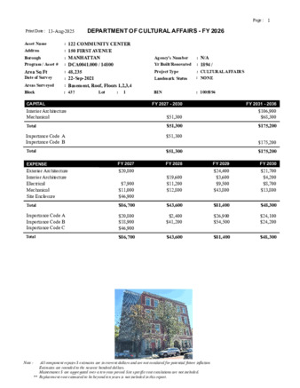 | User Carmen Cheung-Tan has attached FY2026_-_126_DCLA_rpt.pdf to Asset Information Management System (AIMS) Report, Asset Report for Fiscal Year 2026 |