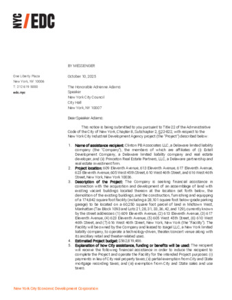 | User Shin Mitsugi has attached 20251010_Clinton_PB_Associates_LLC_CCouncil_Speaker_Notice_88-222.pdf to Notice Pursuant to Section 22-822 of the Administrative Code of the City of New York |