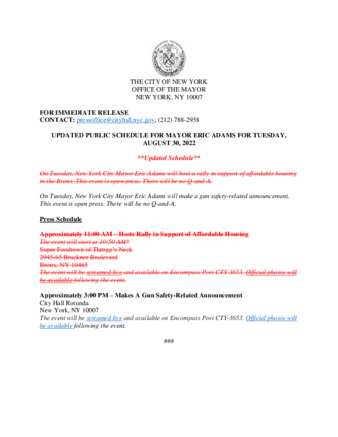 | User Ciara Collins has attached Mayor_s_Press_Office_Aug_30_2022.pdf to UPDATED PUBLIC SCHEDULE FOR MAYOR ERIC ADAMS FOR TUESDAY, AUGUST 30, 2022 |