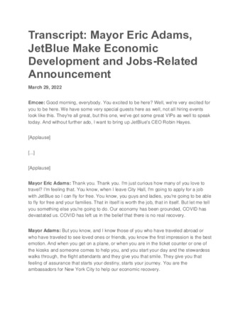 | User Ciara Collins has attached Mayor_s_Press_Office_March_29_2022.pdf to Transcript: Mayor Eric Adams, JetBlue Make Economic Development and Jobs-Related Announcement |