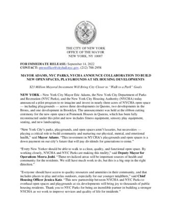 | User Ciara Collins has attached Mayor_s_Press_Office_Sept_14_2022.pdf to MAYOR ADAMS, NYC PARKS, NYCHA ANNOUNCE COLLABORATION TO BUILD NEW OPEN SPACES, PLAYGROUNDS AT SIX HOUSING DEVELOPMENTS  |