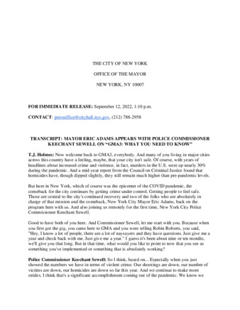 | User Ciara Collins has attached Mayor_s_Press_Office_Sept_12a_2022.pdf to TRANSCRIPT: MAYOR ERIC ADAMS APPEARS WITH POLICE COMMISSIONER KEECHANT SEWELL ON “GMA3: WHAT YOU NEED TO KNOW” |