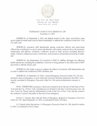 | User Richard Joe has attached EEO_289.pdf to Emergency Executive Order No. 289 |
