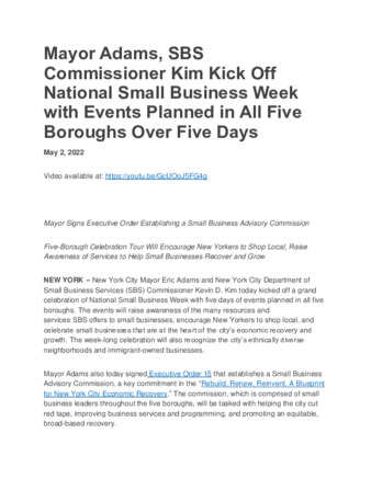 | User Ciara Collins has attached Mayor_s_Press_Office_May_2b_2022.pdf to Mayor Adams, SBS Commissioner Kim Kick Off National Small Business Week with Events Planned in All Five Boroughs Over Five Days |