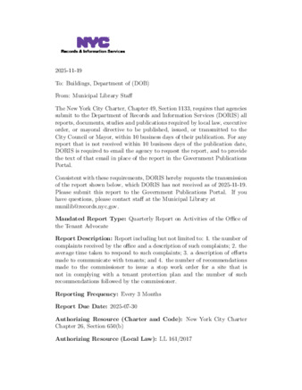| User munilib has attached 1245_report_request20251119-25310-py6p6n.pdf to Late Notice - Quarterly Report on Activities of the Office of the Tenant Advocate |