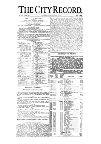 The City Record newspaper publishes notices which includes but is not limited to: public hearings and meetings, public auctions and sales, solicitations and awards and official rules proposed and adopted by city agencies. This is the City Record Newspaper for December 13, 1915.