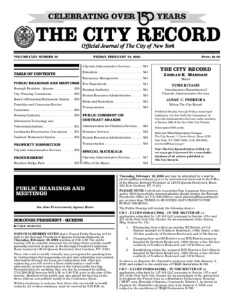 The City Record newspaper publishes notices which includes but is not limited to public hearings and meetings, public auctions and sales, solicitations, and awards and official rules proposed and adopted by city agencies.