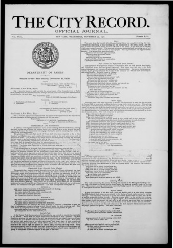 The City Record newspaper publishes notices which includes but is not limited to: public hearings and meetings, public auctions and sales, solicitations and awards and official rules proposed and adopted by city agencies. This is the City Record Newspaper for November 28, 1901.