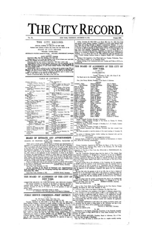 The City Record newspaper publishes notices which includes but is not limited to: public hearings and meetings, public auctions and sales, solicitations and awards and official rules proposed and adopted by city agencies. This is the City Record Newspaper for December 19, 1912.