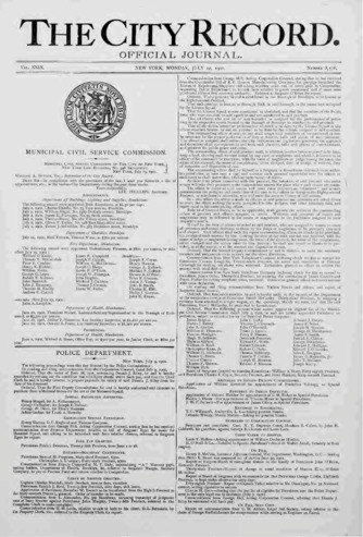 The City Record newspaper publishes notices which includes but is not limited to: public hearings and meetings, public auctions and sales, solicitations and awards and official rules proposed and adopted by city agencies. This is the City Record Newspaper for July 22, 1901.