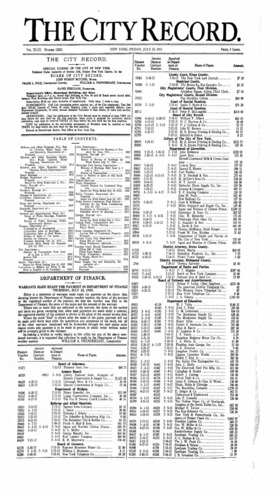 The City Record newspaper publishes notices which includes but is not limited to: public hearings and meetings, public auctions and sales, solicitations and awards and official rules proposed and adopted by city agencies. This is the City Record Newspaper for July 23, 1915.