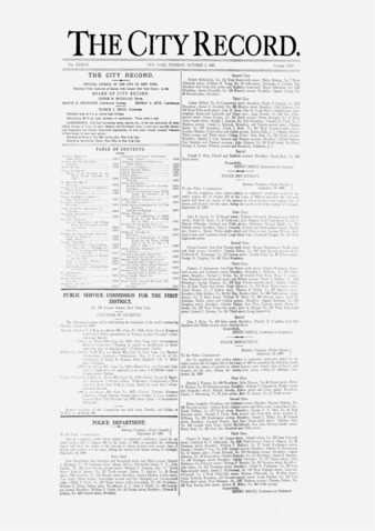 The City Record newspaper publishes notices which includes but is not limited to: public hearings and meetings, public auctions and sales, solicitations and awards and official rules proposed and adopted by city agencies. This is the City Record Newspaper for October 05, 1909.