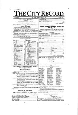 The City Record newspaper publishes notices which includes but is not limited to: public hearings and meetings, public auctions and sales, solicitations and awards and official rules proposed and adopted by city agencies. This is the City Record Newspaper for June 09, 1910.