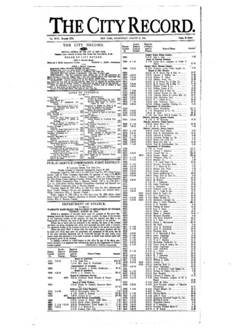 The City Record newspaper publishes notices which includes but is not limited to: public hearings and meetings, public auctions and sales, solicitations and awards and official rules proposed and adopted by city agencies. This is the City Record Newspaper for August 21, 1918 with supplement.