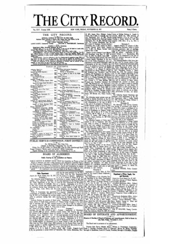 The City Record newspaper publishes notices which includes but is not limited to: public hearings and meetings, public auctions and sales, solicitations and awards and official rules proposed and adopted by city agencies. This is the City Record Newspaper for November 23, 1917.