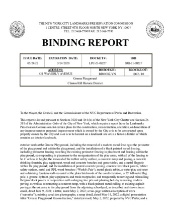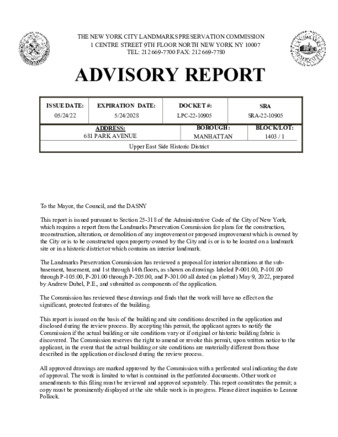 As required by New York City Administrative Code, Title 25, Section 318 report containing the May 2022 Staff Level Reports of the Landmarks Preservation Commission.