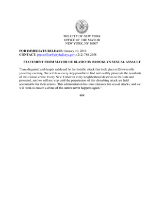 Mayor's Press Release: STATEMENT FROM MAYOR DE BLASIO ON BROOKLYN SEXUAL ASSAULT