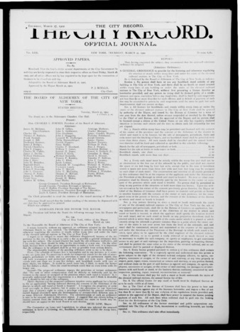 The City Record newspaper publishes notices which includes but is not limited to: public hearings and meetings, public auctions and sales, solicitations and awards and official rules proposed and adopted by city agencies. This is the City Record Newspaper for March 27, 1902.