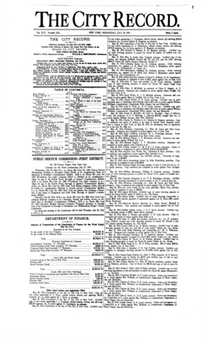 The City Record newspaper publishes notices which includes but is not limited to: public hearings and meetings, public auctions and sales, solicitations and awards and official rules proposed and adopted by city agencies. This is the City Record Newspaper for July 29, 1914.