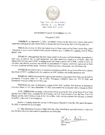Emergency Executive Order No. 891, is being submitted to extend Emergency Executive Order No. 889, dated November 29, 2025; for five (5) days as it relates to Rikers.