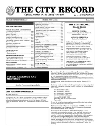The City Record newspaper publishes notices which includes but is not limited to: public hearings and meetings, public auctions and sales, solicitations and awards and official rules proposed and adopted by city agencies.