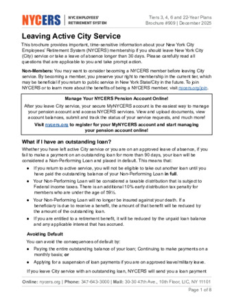 This brochure explains the rights and options available to members after leaving City service, and also encourages non-members to join NYCERS before leaving city service.
