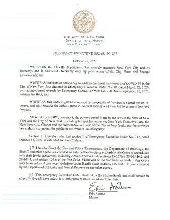 Emergency Executive Order No. 237, is being submitted to extend Emergency Executive Order No. 232, dated October 12, 2022, for five (5) days, if this relates to Covid-19 pandemic.