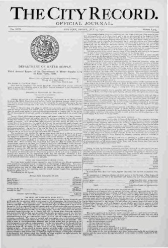 The City Record newspaper publishes notices which includes but is not limited to: public hearings and meetings, public auctions and sales, solicitations and awards and official rules proposed and adopted by city agencies. This is the City Record Newspaper for July 19, 1901.