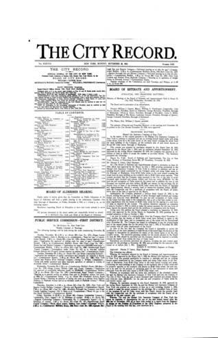 The City Record newspaper publishes notices which includes but is not limited to: public hearings and meetings, public auctions and sales, solicitations and awards and official rules proposed and adopted by city agencies. This is the City Record Newspaper for November 28, 1910.