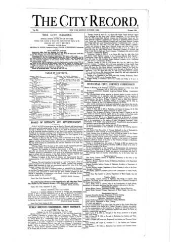 The City Record newspaper publishes notices which includes but is not limited to: public hearings and meetings, public auctions and sales, solicitations and awards and official rules proposed and adopted by city agencies. This is the City Record Newspaper for October 07, 1912.