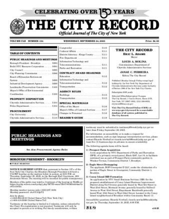 The City Record newspaper publishes notices which includes but is not limited to public hearings and meetings, public auctions and sales, solicitations and awards and official rules proposed and adopted by city agencies.