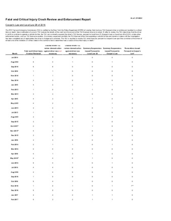 The number of summary suspensions of TLC drivers that occurred after a crash as well as any enforcement actions taken following commission review. This is a quarterly report sent to Speaker, City Council and to DORIS.