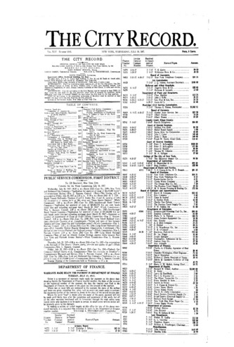 The City Record newspaper publishes notices which includes but is not limited to: public hearings and meetings, public auctions and sales, solicitations and awards and official rules proposed and adopted by city agencies. This is the City Record Newspaper for July 18, 1917.