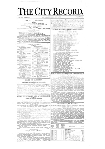 The City Record newspaper publishes notices which includes but is not limited to: public hearings and meetings, public auctions and sales, solicitations and awards and official rules proposed and adopted by city agencies. This is the City Record Newspaper for June 19, 1918.