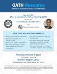OATH staff were at the library to assist and educate people about what to do should they have received a summons and to check to determine if someone has an outstanding summons. Materials about remote hearings and other free resources were provided to the public as well.
