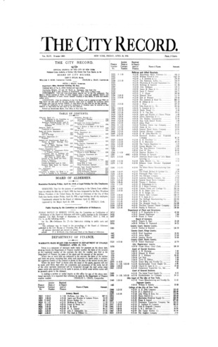 The City Record newspaper publishes notices which includes but is not limited to: public hearings and meetings, public auctions and sales, solicitations and awards and official rules proposed and adopted by city agencies. This is the City Record Newspaper for April 26, 1918.