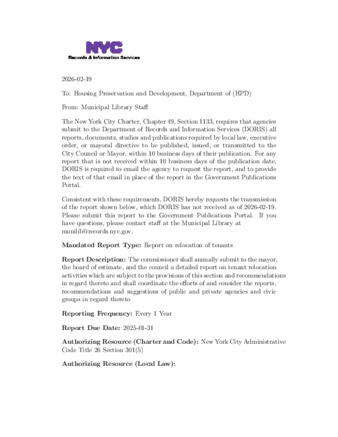 - Report on relocation of tenants